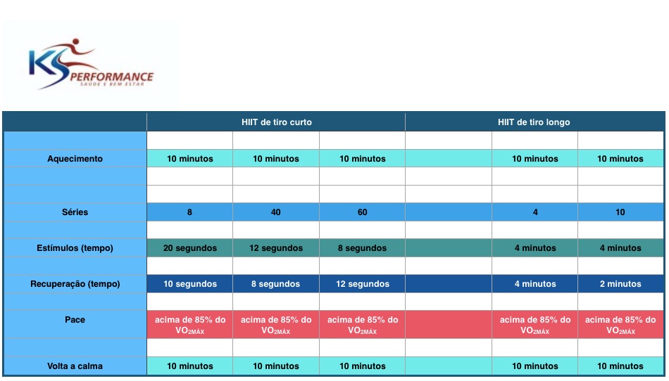Na verdade existe uma grande variação que pode ser criada dentro destes parâmetros que caracterizam o HIIT.